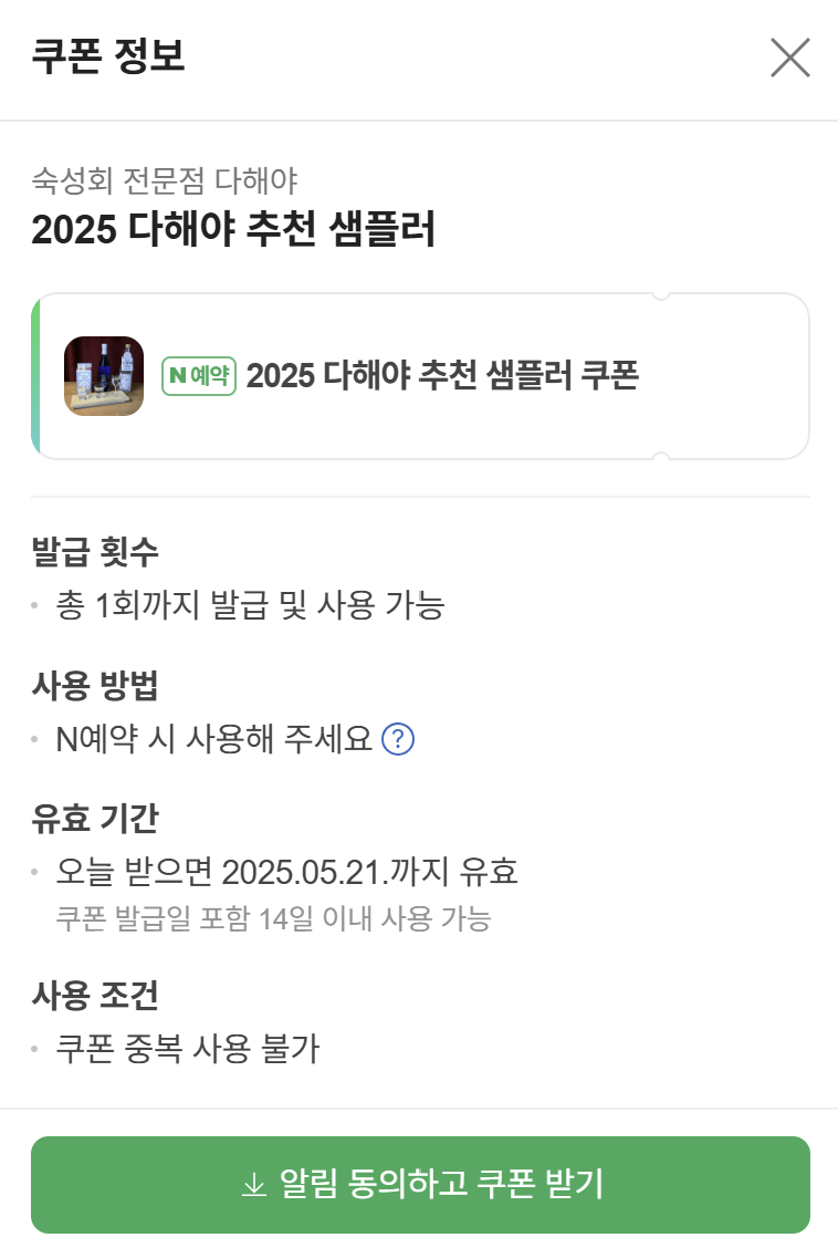 - 방문 인증 이벤트 참여 시 미니 숙성회 서비스 제공