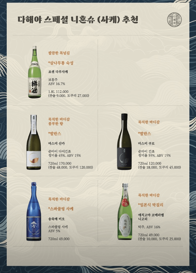 | 안키모 | 18,000원 | 일본식 간요리, 진한 풍미 |