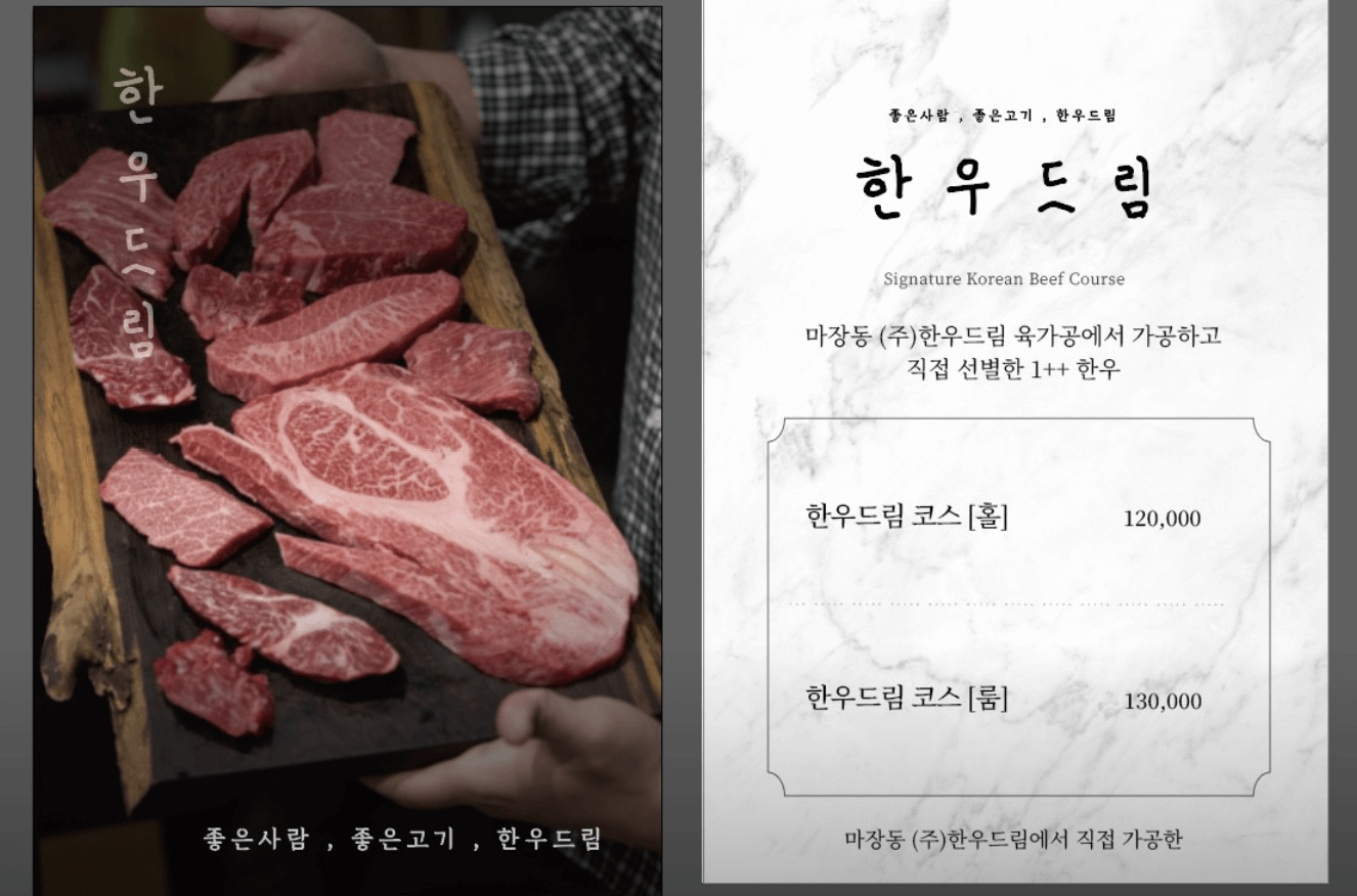 - 주차: 발렛 주차 가능(최초 3시간 5,000원, 이후 시간당 추가 요금) 세븐일레븐 앞 천막에서 "한우드림 왔어요"라고 말씀해주세요.